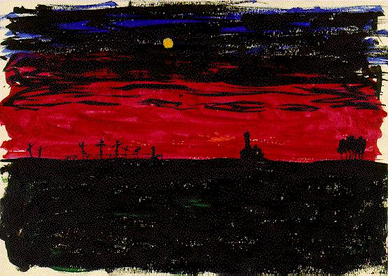 This is what I drew (paper, watercolors) when I was younger and much, MUCH more misanthropic than I am now ;) Dated ca. 1980. Night embankment. Cementery. This is not a drawing, this is a photo. And it was made much later, around 1988.