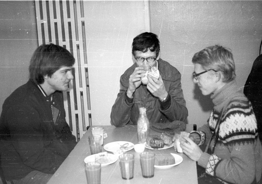 In the students' lunchroom. Left to right: Michael Rozhdestvensky, Valentin Popov and me.